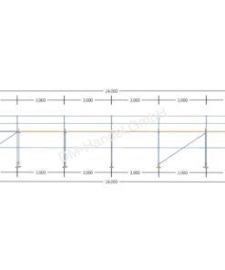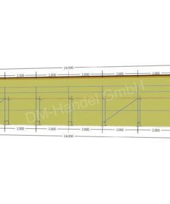 Das abgebildete Stahlgerüst mit Holzböden 108qm Arbeitsfläche ist 24m breit und hat eine maximale Arbeitshöhe von 4,4m.