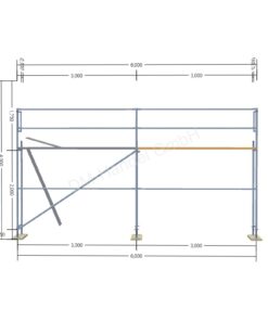 Das abgebildete Stahlgerüst mit Holzböden 27qm Arbeitsfläche ist 6m breit und hat eine maximale Arbeitshöhe von 4,4m.