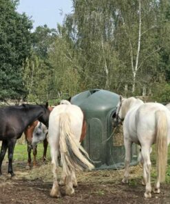 Mit unserer Heuglocke mit 5 Fressöffnungen und Heunetz, für Rundballen bis 150cm fördern Sie ein gesundes Fressverhalten Ihrer Tiere und sichern gleichzeitig die Sauberkeit sowie die Futterqualität.