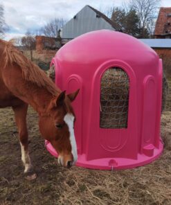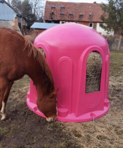 Mit unserer Heuglocke mit 5 Fressöffnungen und Heunetz, für Rundballen bis 150cm pink fördern Sie ein gesundes Fressverhalten Ihrer Tiere und sichern gleichzeitig die Sauberkeit sowie die Futterqualität.
