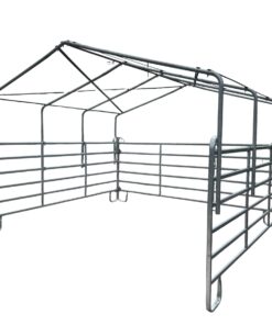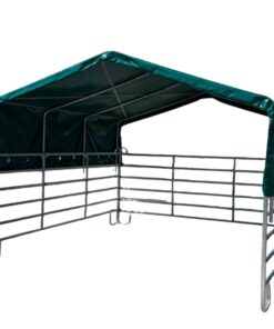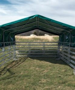 Die Weidezelt 3.6×4.0m Dachkonstruktion ist eine preiswerte Lösung, um Flächen wetterfest zu überdachen. Sie schützt zuverlässig vor starker Sonneneinstrahlung, Regen und Schnee. Dank des einfachen Auf- und Abbaus kann das Zelt bei Bedarf flexibel verschoben werden.