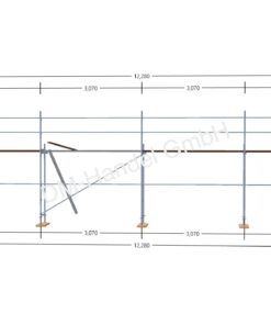 Das abgebildete Alu Gerüst mit Alu-Rahmentafel 55qm Arbeitsfläche ist 12,28m breit und hat eine maximale Arbeitshöhe von 4,4m.