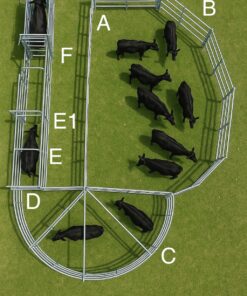 – 1 x Eintreibebogen 180° bestehend aus 1x Schwingtor / 4x Kurvenpanel / 3x Stabilisierungsstangen (C)