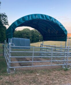 Im Vergleich zu herkömmlichen Weidezelten haben sie eine wesentliche Verbesserung der Haltbarkeit der Konstruktion, die durch die hochwertigen und schweren Profile. Dazu kommt natürlich entsprechender Rost- und Korrosionsschutz aufgrund verzinkter Oberfläche. Durch das runde Dach entsteht eine deutlich höhere Haltbarkeit als bei spitzen Dächern. Nicht nur Tiere finden hier Unterschlupf, auch Autos, Maschinen, Heu und Vieles mehr können Sie hier unterbringen.